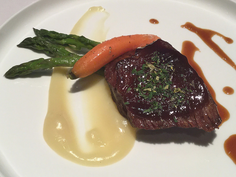 Hoisin Glazed Braised Short Ribs with sweet potato puree, Asian vegetables and star anise