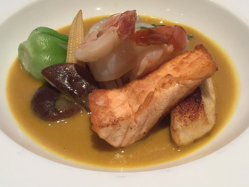 Malaysian-style Boullabaisse with salmon, snapper, tiger prawns and coconut cream
