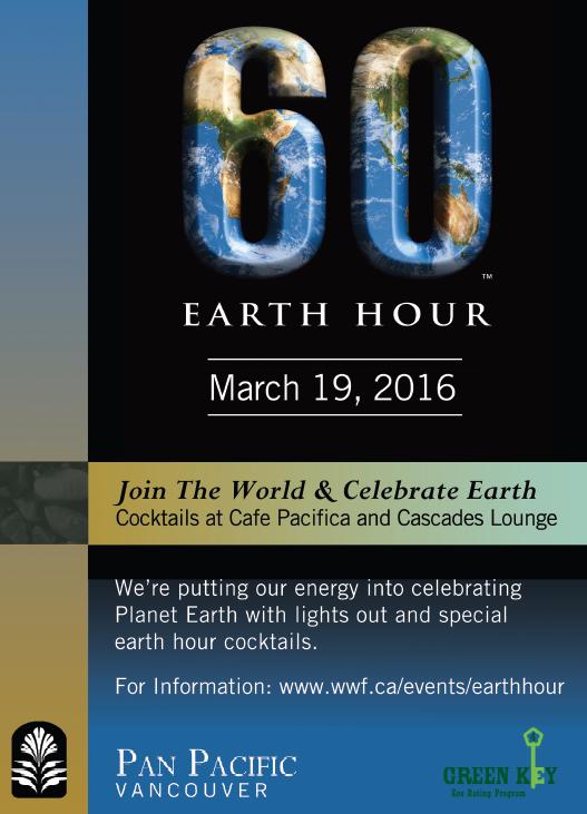 So to do our part, the Pan Pacific Vancouver will shut down all power and lights on March 19 between 830pm-930pm, that are not essential to our guests and associates comfort, safety, security and operations.