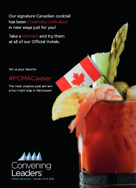 PCMA is also running a contest involving Canada’s signature cocktail – the caesar. Each host hotel will be serving up their version of the caesar. Attendees can sample from any the hotels during the conference and are asked to post it to social media with #PCMACaesar. The most creative post will win a four-night stay in Vancouver!