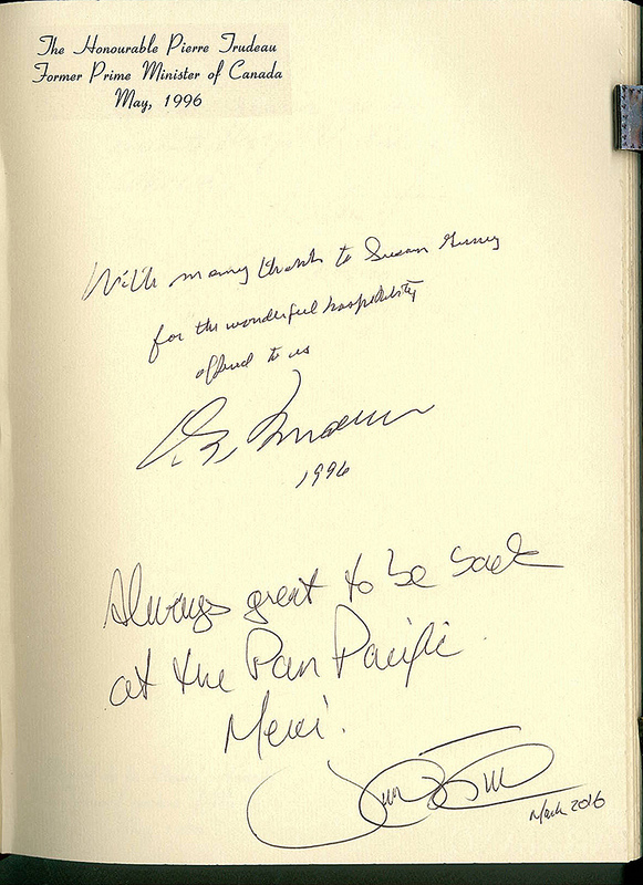 In May of 1996, the Honourable Pierre Trudeau, Former Prime Minister of Canada, stayed at the Pan Pacific Vancouver. Flashforward (almost) twenty years when his son and current Prime Minister of Canada, the Right Honorable Justin Trudeau and his family stayed at the Pan during the GLOBE 2016 Conference.